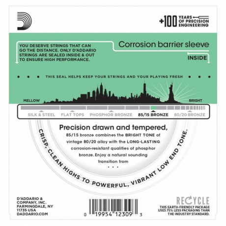 • Uzun Ömürlü Dayanıklılık: D’Addario’nun hassas sarım teknolojisi ve korozyona dayanıklı özel paketi (VCI) ile telleriniz uzun süre ilk günkü tonunu korur.